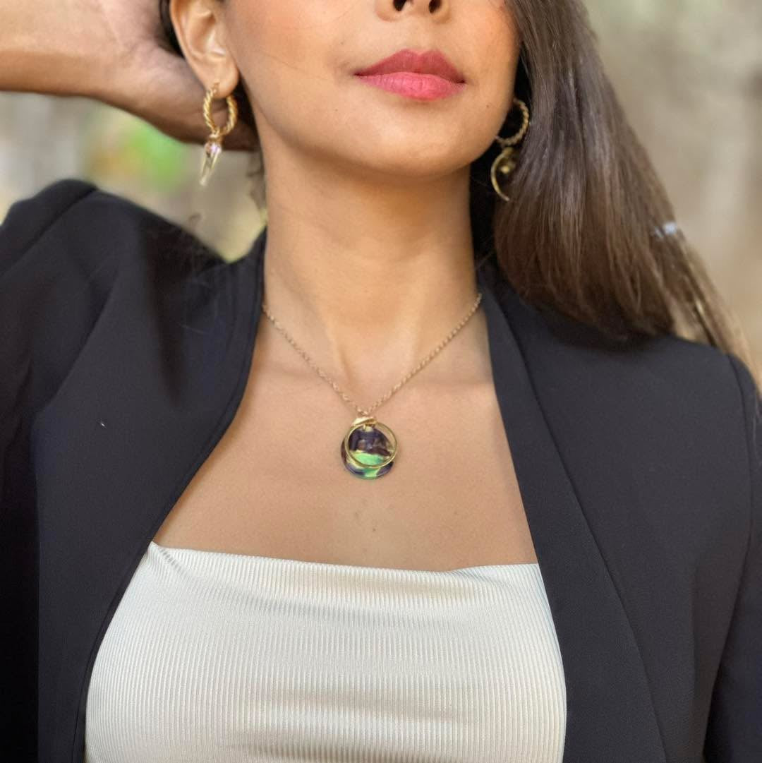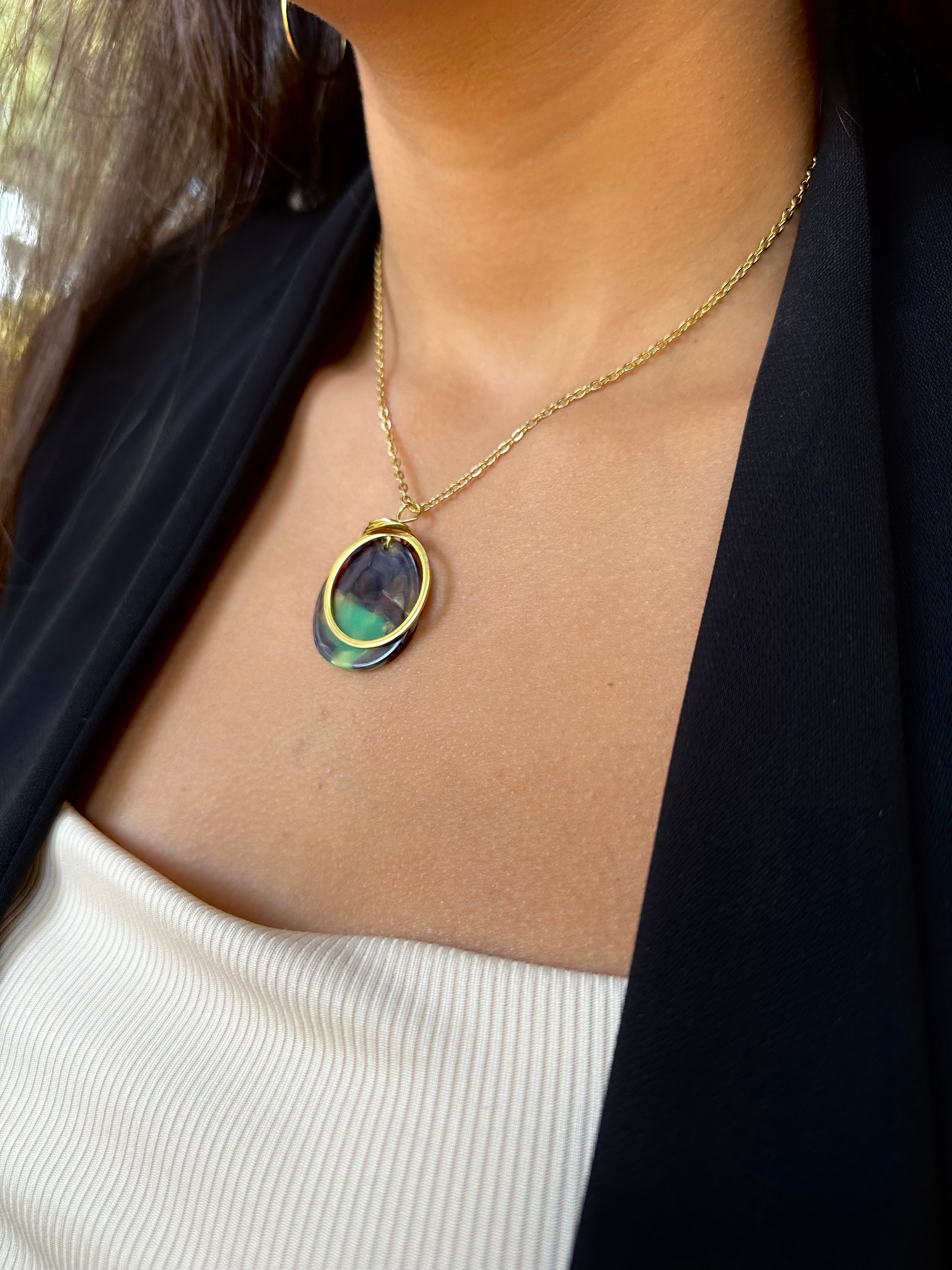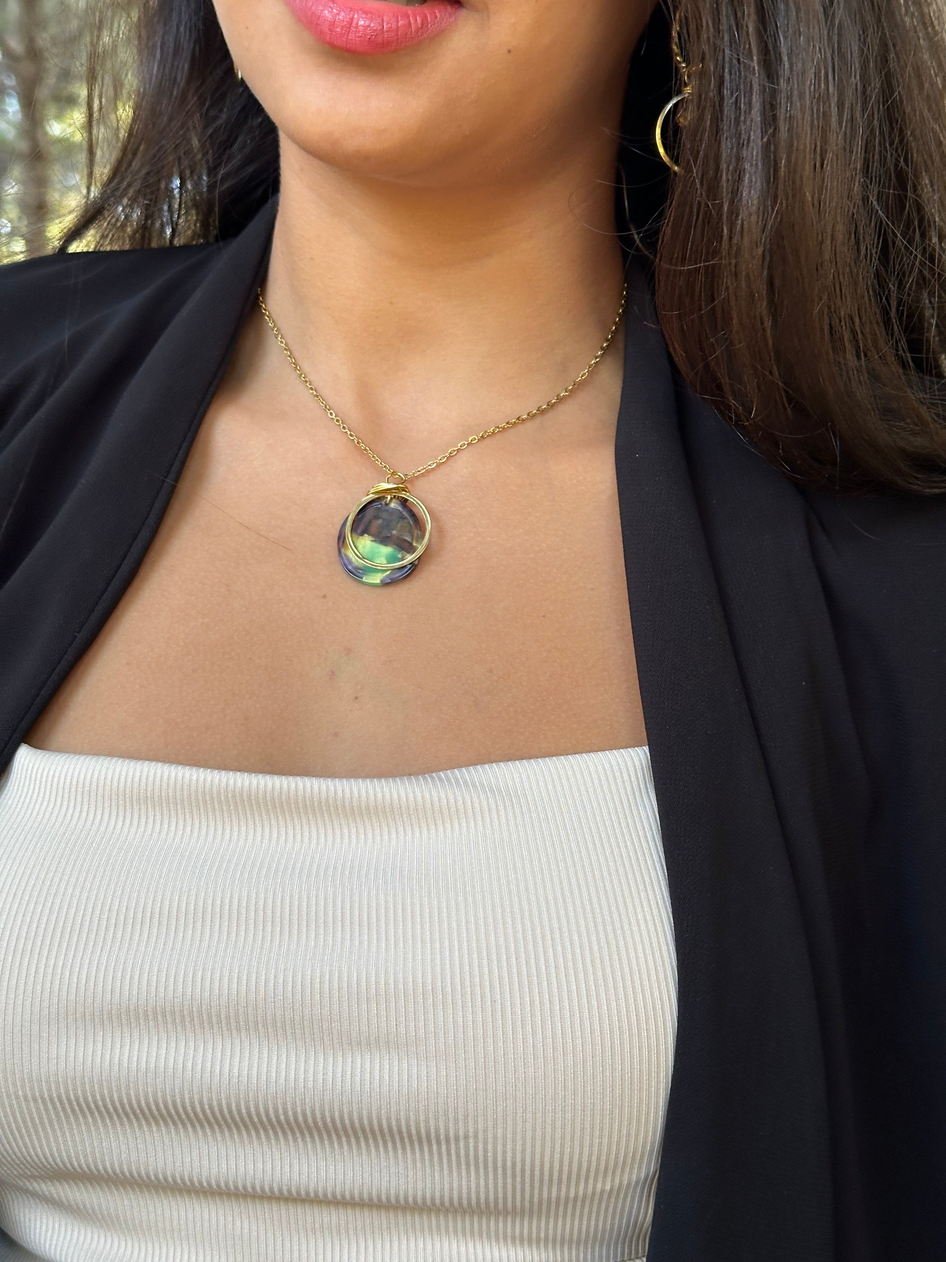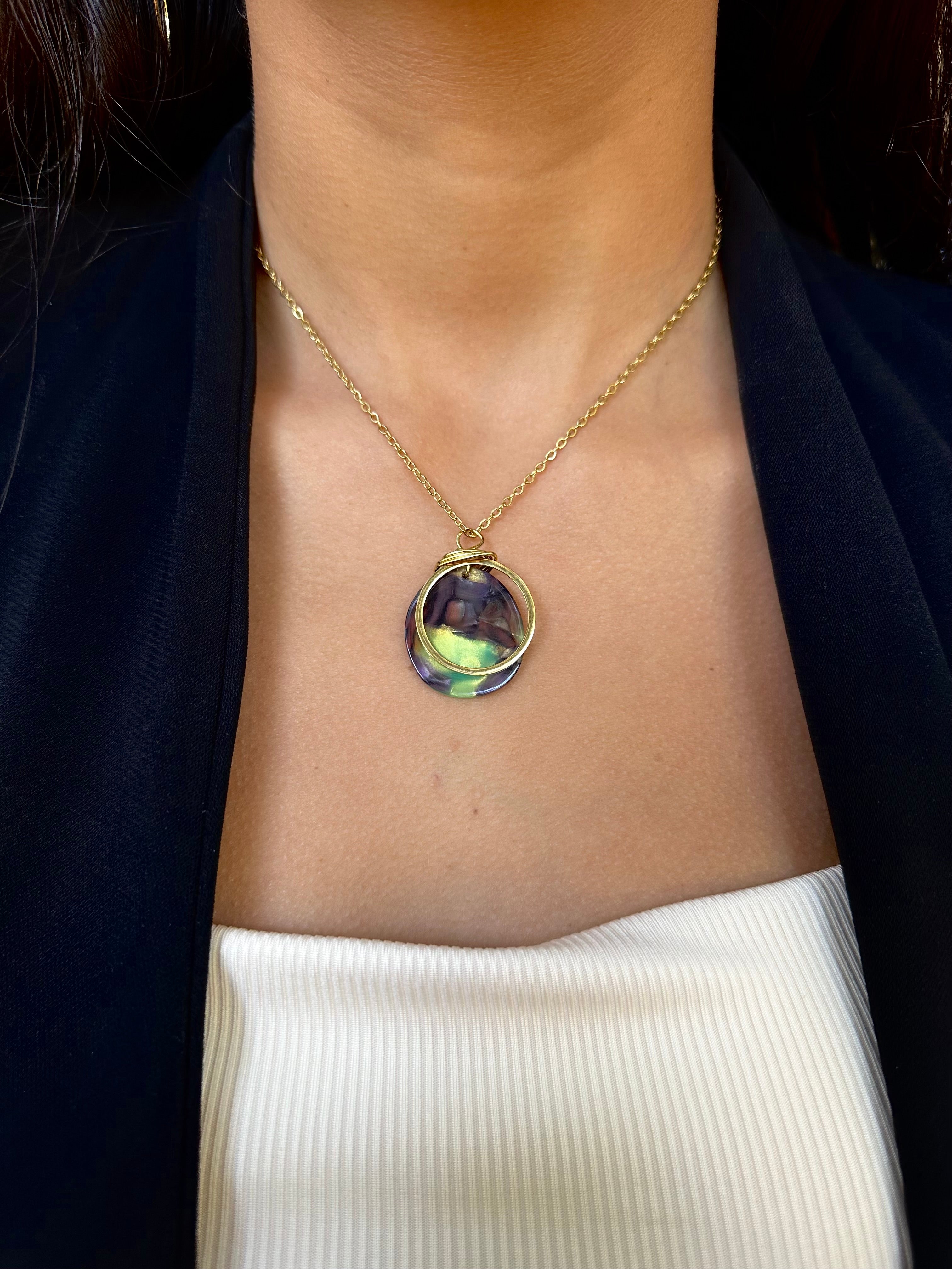 Designed with a resin stunning autumn forest pendant, this necklace complements any outfit. The stainless steel chain and loop provide durability and long-lasting wear.