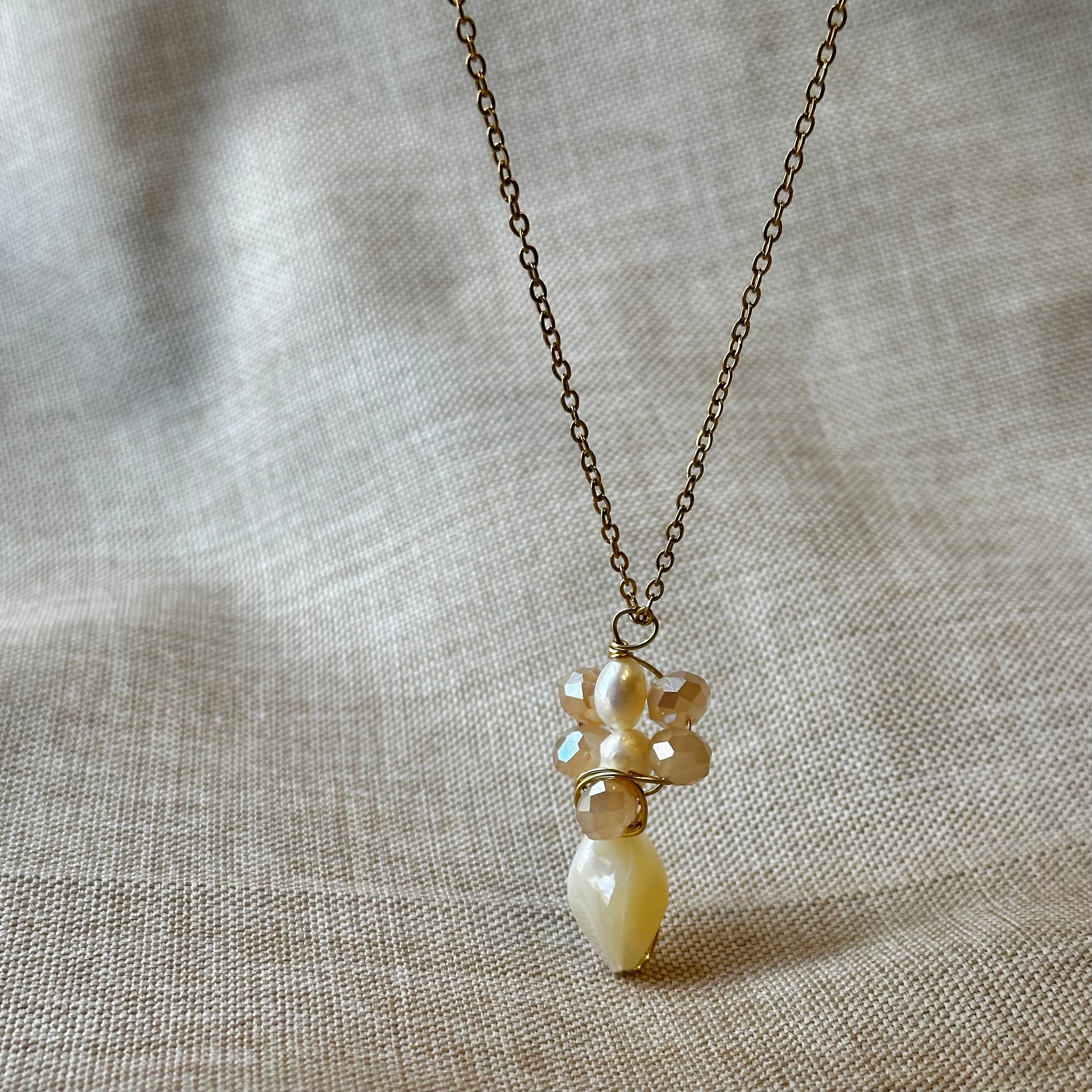 Enhance your elegant evening look with the Champagne Princess Necklace. This exquisite piece features a champagne toned crystal chain on a sleek stainless steel chain, creating a sophisticated and timeless accessory.
