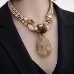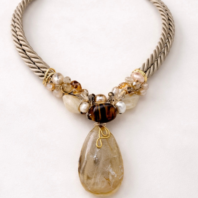 Beige drop cluster pendant necklace, with purple and light pink shades a standout piece that is uniquely crafted for you! This short, eye-catching design is truly one of a kind.