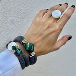 Experience elegance with our Ever Green & Mother of Pearl Set. Embrace the natural beauty of mother of pearl in a wrapover bracelet, ring, and chain necklace. The rich green tones add a touch of color, making this set perfect for any occasion. Elevate your style with this stunning set.