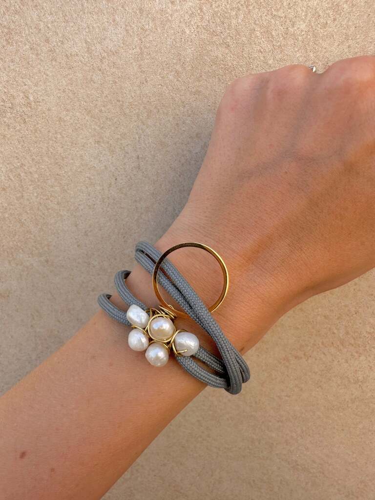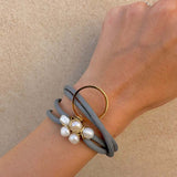 This Fresh Water Pearl Bracelet gives you a uniquely captivating look. Crafted with grey cord to wrapover a golden loop and fresh water pearls, it exudes style and grace. Whether it's for a night out or a special occasion, it's sure to elevate any look.