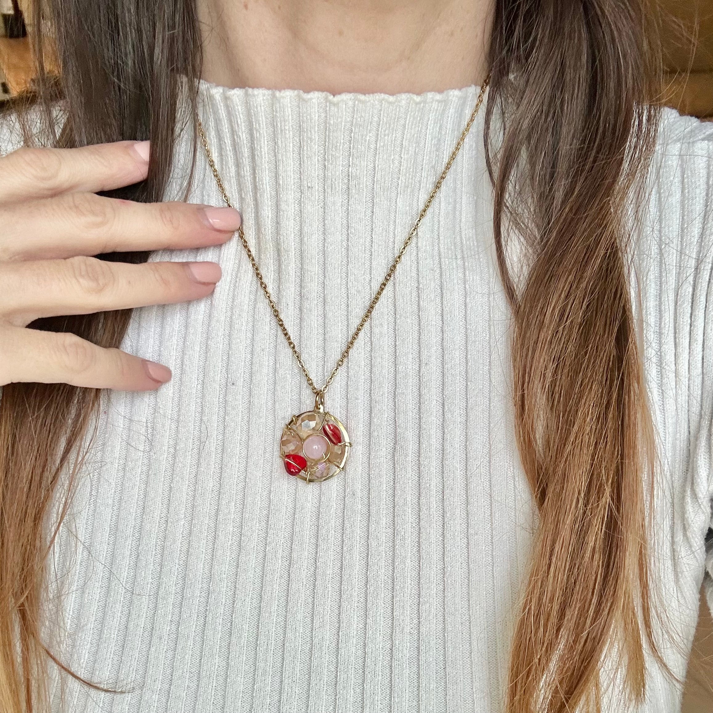 Spread the love (and some serious style) with the I Love You Loop necklace! Featuring a playful parade of red hearts and delightful peach beads, this gold loop beauty will have you saying I adore you