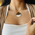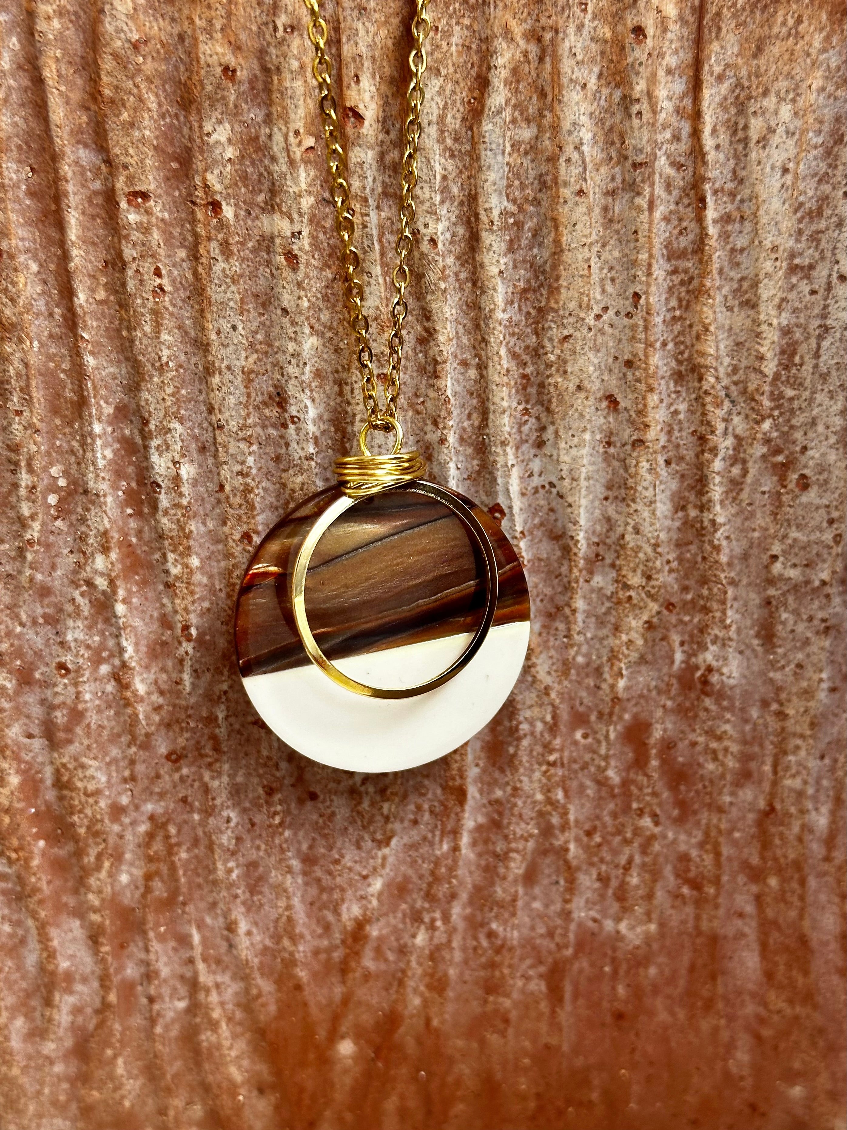 Elevate your style with the Inti the woods Necklace. This exquisite necklace features a stunning pendant with warm wooden hues on a durable stainless steel chain. Enjoy the perfect blend of sophistication and nature in this short necklace. Stand out with a unique piece that complements any outfit.