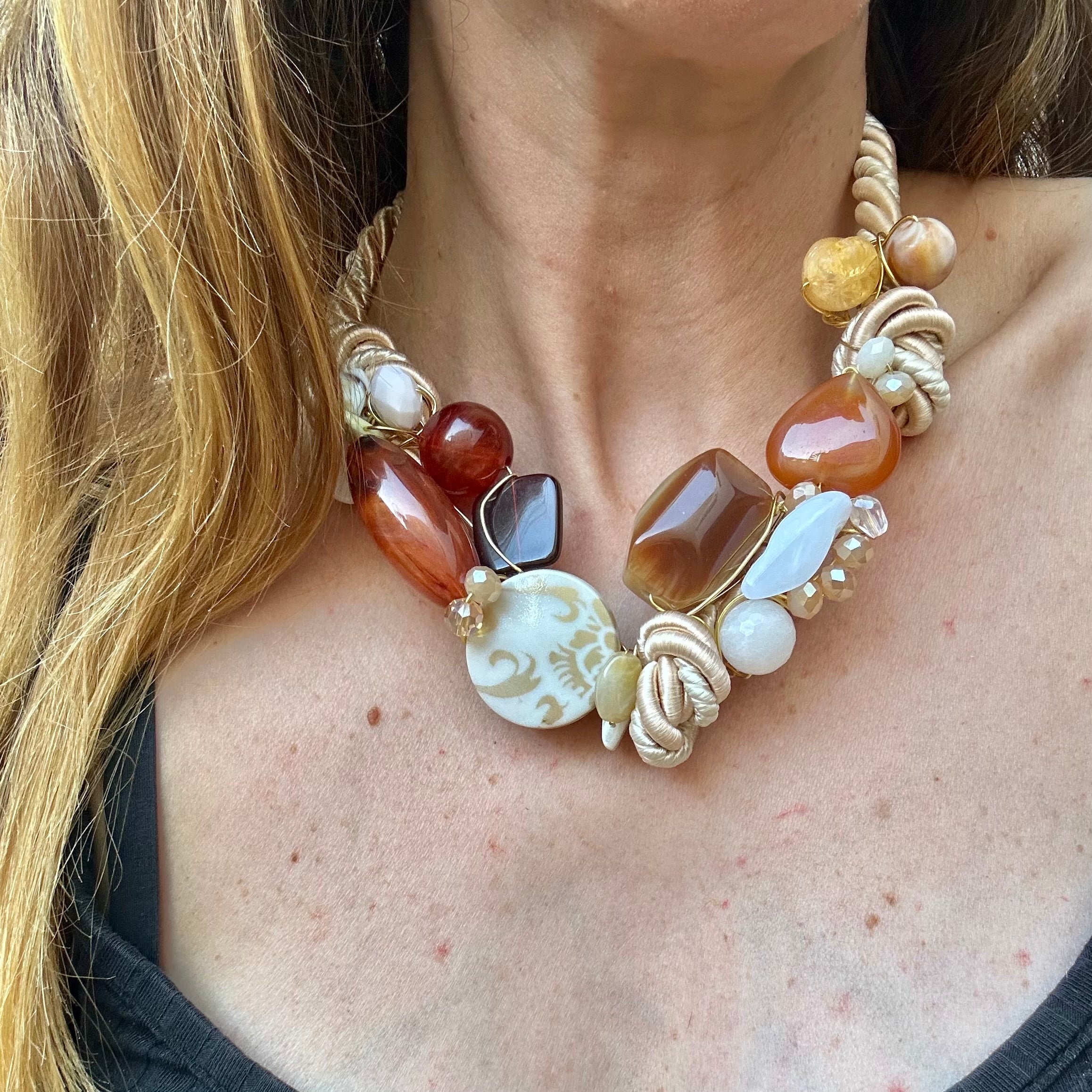 Elevate your style with Neutral Autumn statement necklace. Combining warm brown hues and neutral tones, this elegant piece is perfect for any occasion. Stand out in a subtle and sophisticated way with this versatile accessory.