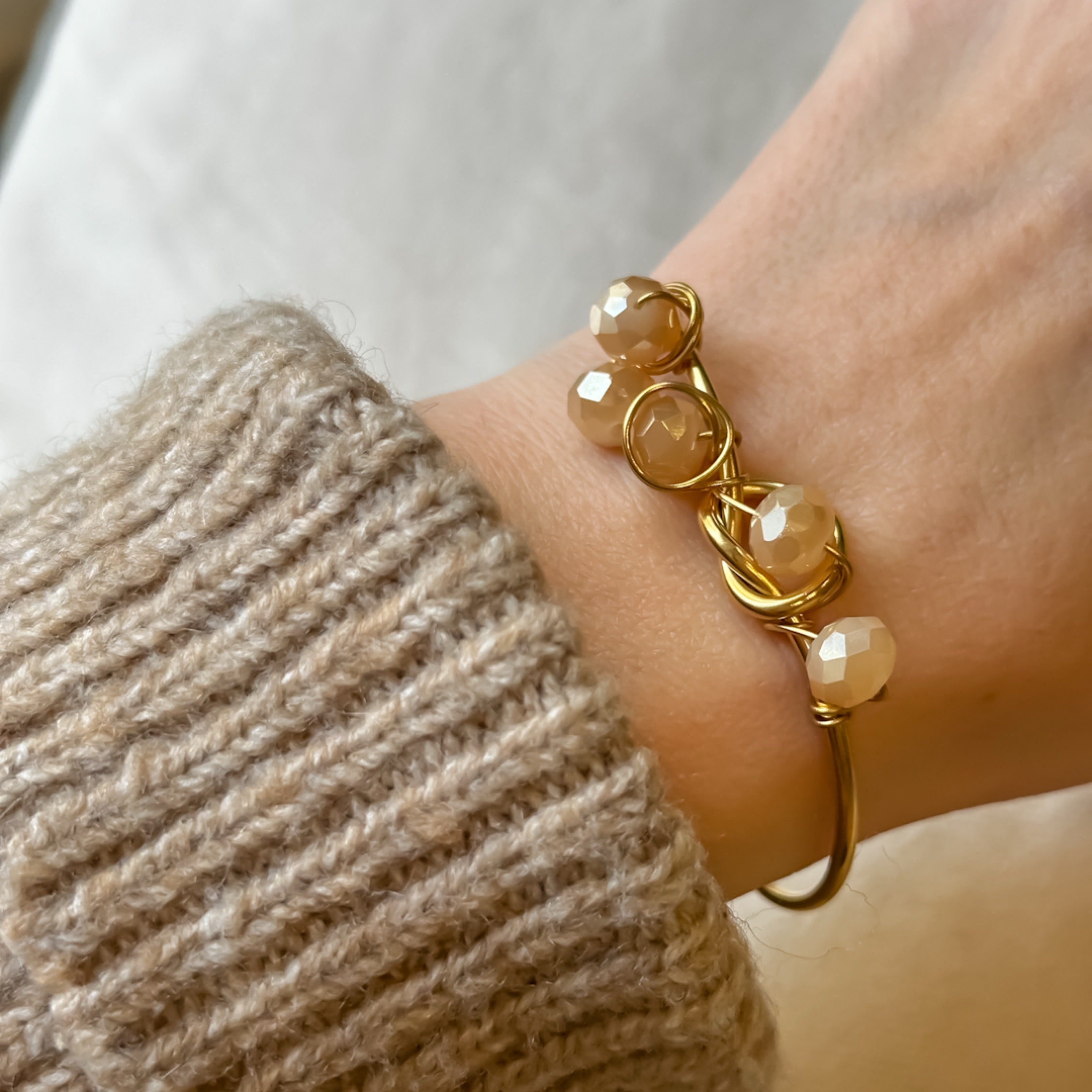 Add a touch of elegance to your look with our Peach Toned Bangle. The stainless steel bangle is adorned with sparkling peach toned crystals, adding a subtle pop of color to any outfit.