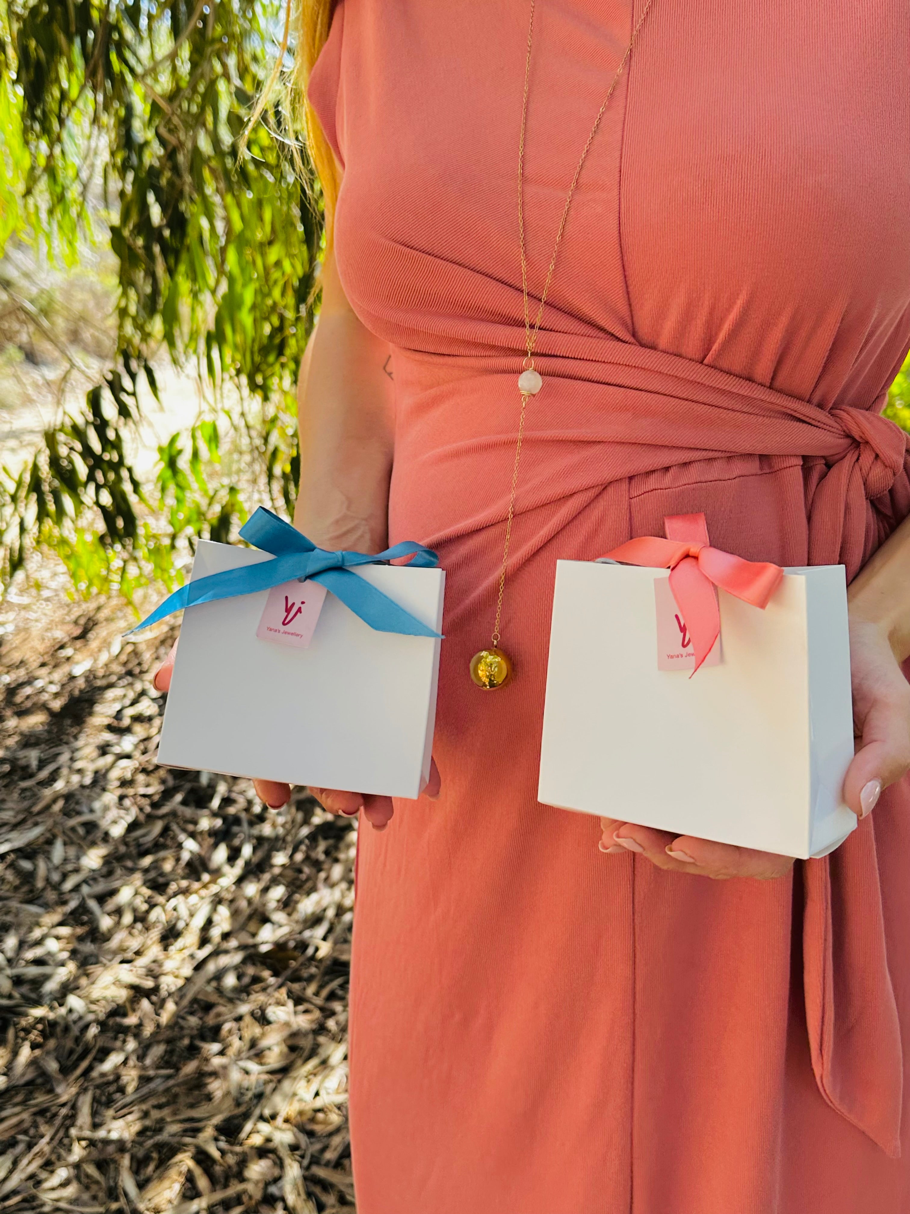 Each pregnancy necklaces comes with its own gender packaging, leave us a note with the preferred ribbon colour you wish to have
